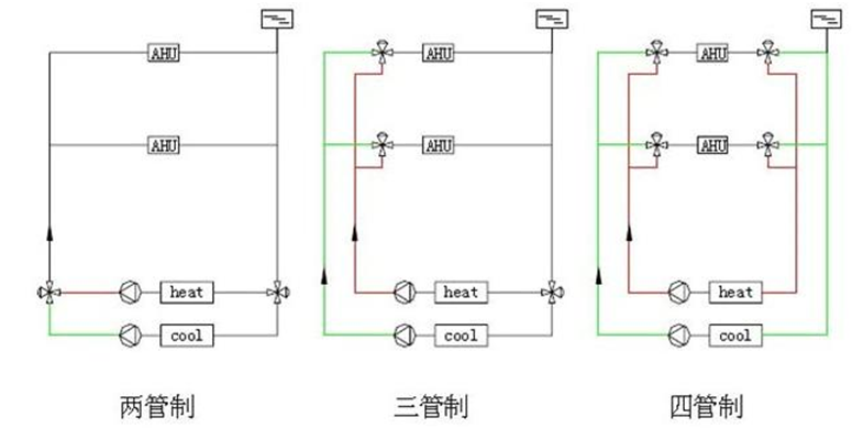 兩種控制:冬季熱水供應和夏季冷水供應在同一管道系統中進行。。