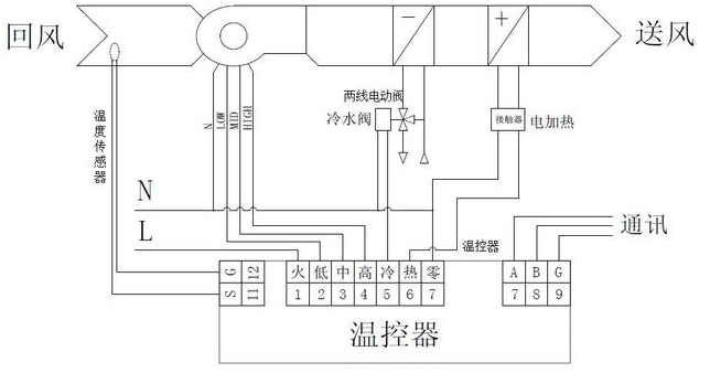 電加熱雙管系統由溫控器、風機盤管、電動閥、電加熱器和接觸器等組成。